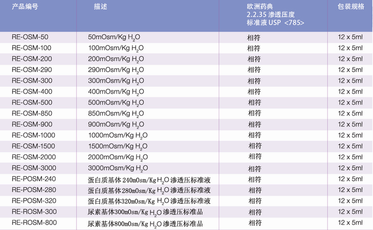 產品簡介:reagecon滲透壓標準品
