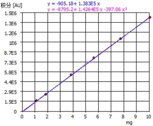 在測試過程中,同樣以碳酸鈣為標樣繪制標準曲線,相關系數達到 0.99947 ,線性良好。